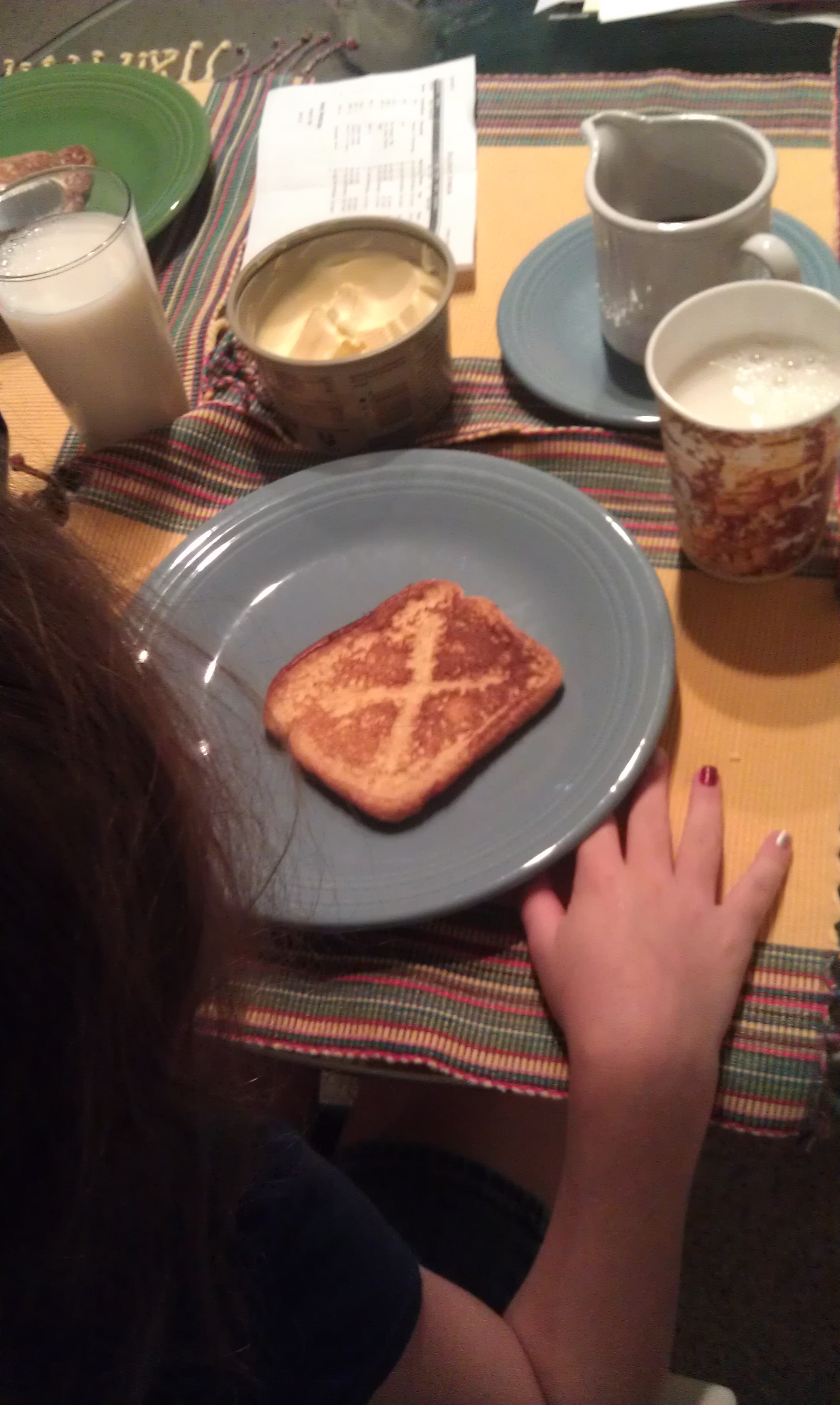 For about 8 years now, we have a tradition at our home that on the first day of school I make French toast for breakfast. It’s a special breakfast treat for the children, usually one of my dinners, but for the first day of school I make French toast and I put an “X” in the middle of the piece of Toast. This is also special for our family for it means “I love you” in our house.